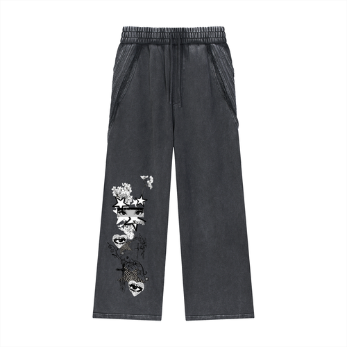 Anime Snow Washed Tape Raw Edge Sweatpants